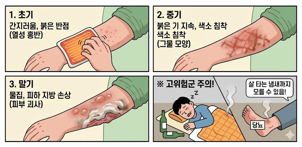 고온 화상은 닿자마자 "앗 뜨거워!" 하며 피하지만, 저온 화상은 통증이 바로 느껴지지 않아 더 위험합니다.