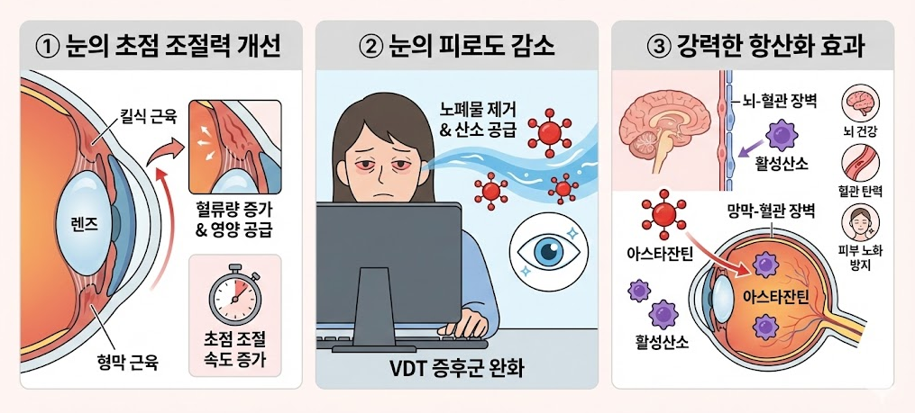 아스타잔틴은 구체적으로 우리 눈에 어떤 도움을 줄까요?