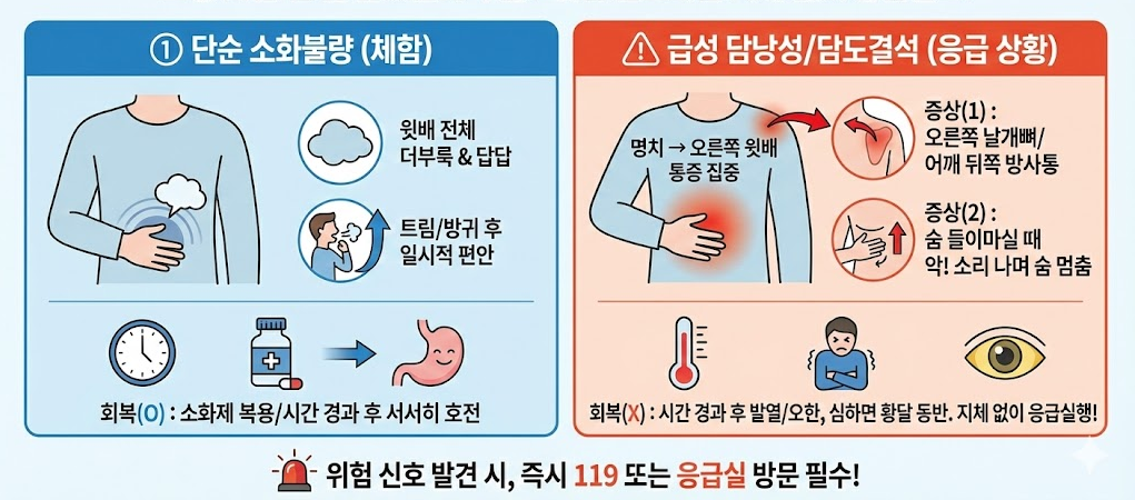 2. 단순 소화불량 & 급성 담낭염/췌장염 (위험 신호 구별법)