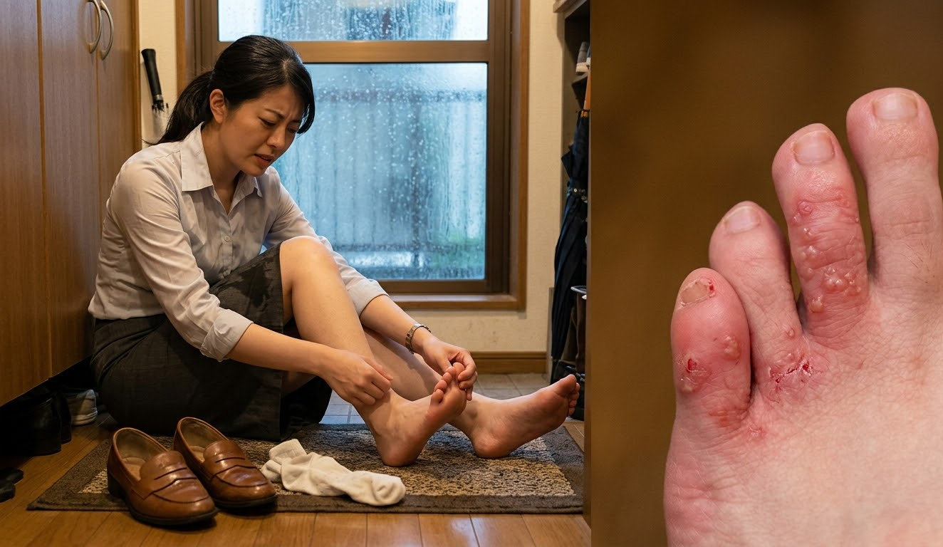 "비 오는 날 레인부츠 신고 출근했는데, 저녁부터 발가락 사이가 미친 듯이 가렵고 작은 물집이 잡힘"