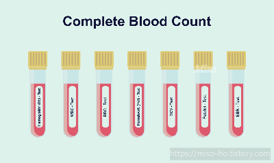 가장 기본이 되는 검사이며, 흔하게 시행되는 검사로 전혈구 검사(Complete Blood Count)가 대표적이에요.