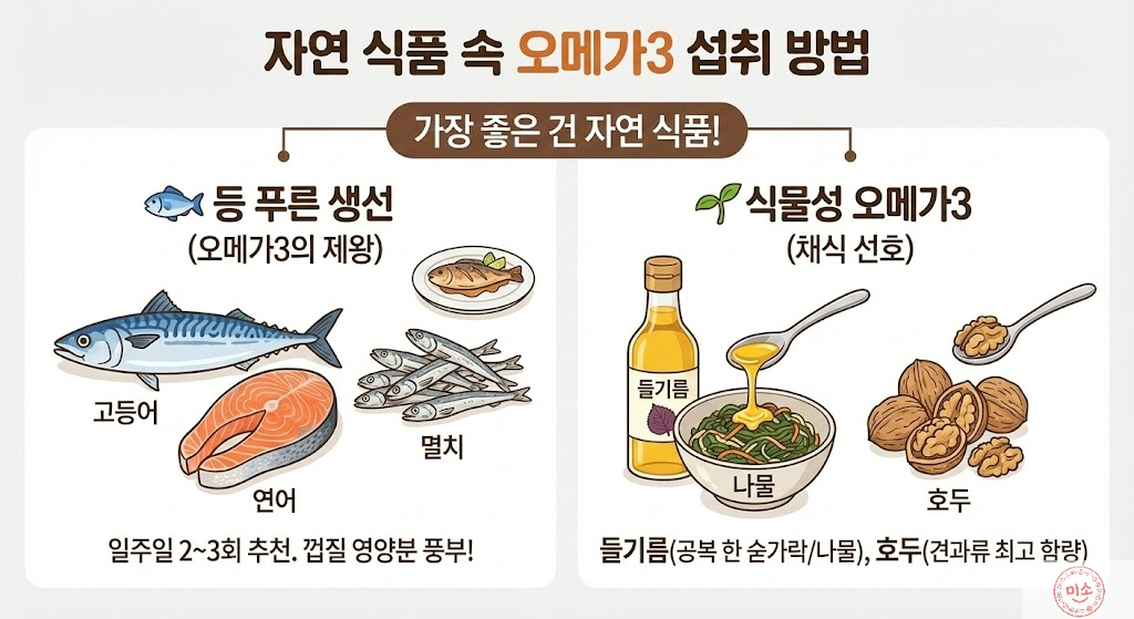 오늘 저녁엔 내 몸의 원활한 흐름을 위해 rTG 오메가3 한 알, 혹은 노릇노릇한 고등어구이로 혈관건강을 챙겨보시는 건 어떨까요? 아, 물론 수술을 앞두고 계시다면 잠시 섭취를 멈춰야 한다는 점, 절대 잊지 마시고요!