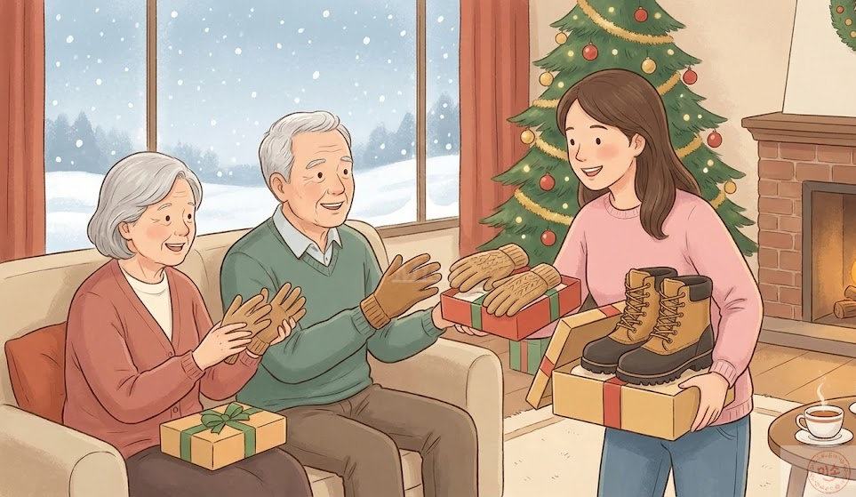 이번 주말, 부모님 댁에 방문하신다면 용돈만 드리지 말고 따뜻한 장갑과 미끄럼 방지 신발을 선물해 드리는 건 어떨까요?, 그리고 꼭 말씀해 주세요, "엄마, 아빠! 춥다고 주머니에 손 넣지 말고 꼭 장갑 끼고 다니세요."라고요.