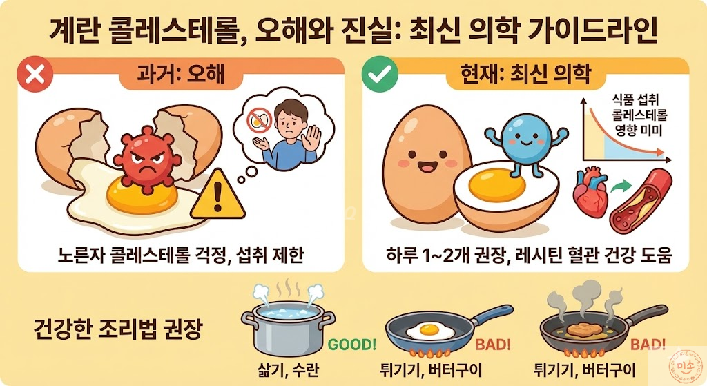 과거에는 노른자에 콜레스테롤이 많다고 피하라고 했지만, 최신 의학 가이드라인은 바뀌었습니다.