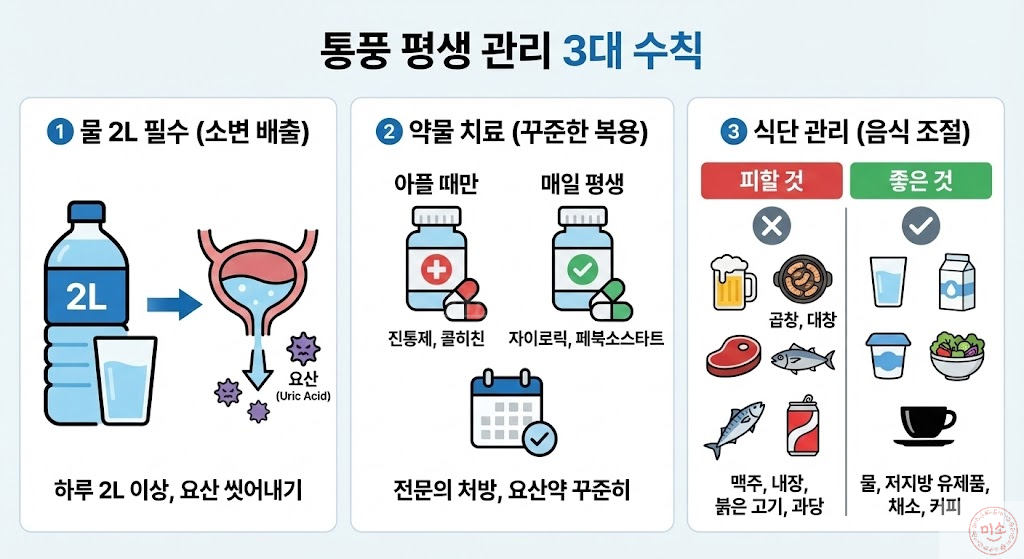 통풍은 평생 관리해야 하는 만성 질환입니다.